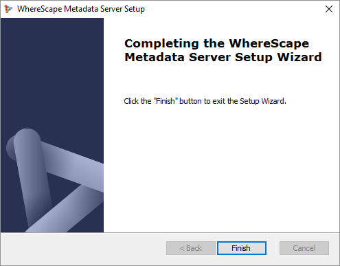 5. Click Install. The installation may take several minutes. Once the installation is complete, the Completing the WhereScape Metadata Server Setup Wizard screen is displayed, as shown in the following screenshot: