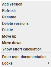 Right-click on a Model in the repository tree shows the model menu. If versions are enabled the options shown in the image below will be available, otherwise the available options will be the same as in the Version Menu.