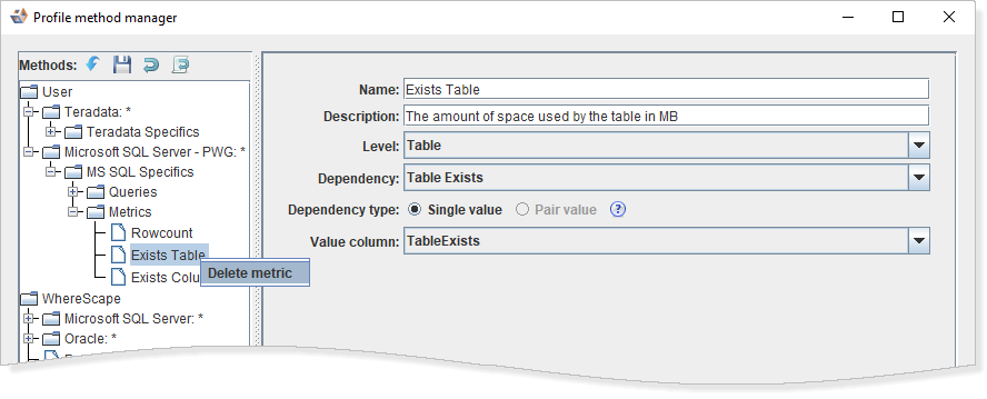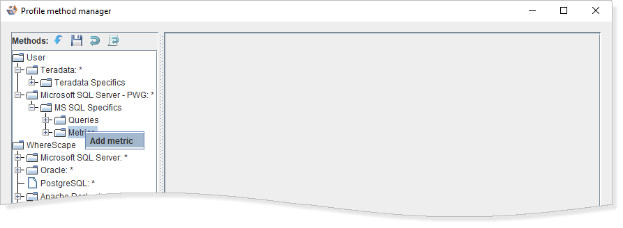 Looking again at the Profiling Method for MS SQL Specifics example; you can configure the profiling on Metrics for