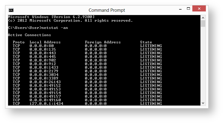 - This can be verified by the 'netstat -an' command in Command Prompt. Here we see that port 1433 is enabled.