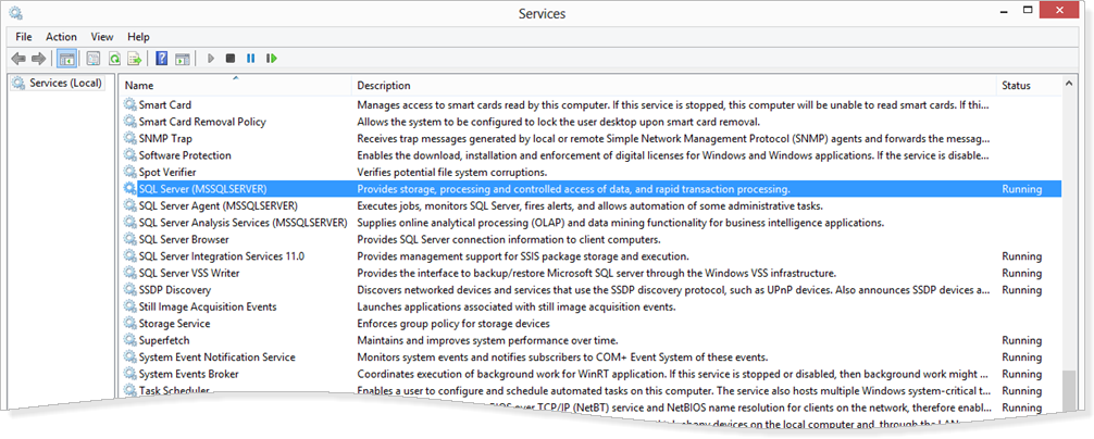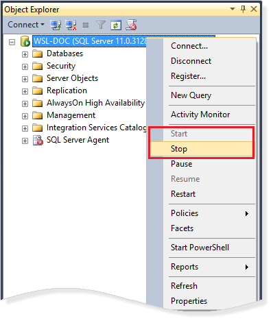 - Finally, stop and start the SQL Server service on the localhost drop-down list or alternatively using the services control panel.