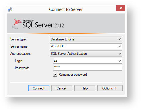 To connect to MS SQL Server, first determine whether you can log in using SQL Server Authentication. This can best be done using Microsoft SQL Server Management Studio, selecting SQL Server Authentication.