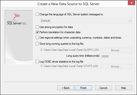 Windows Authentication | Select the checkbox to connect via Windows authentication. If unselected, then connection will be attempted using authentication mechanisms defined in the DSN. |