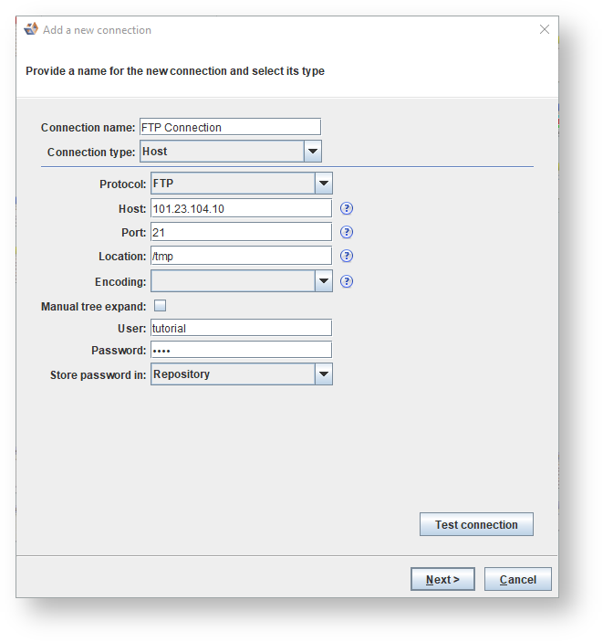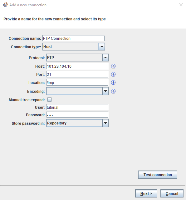Test connection | Click the button to ensure the entered parameters are correct. |