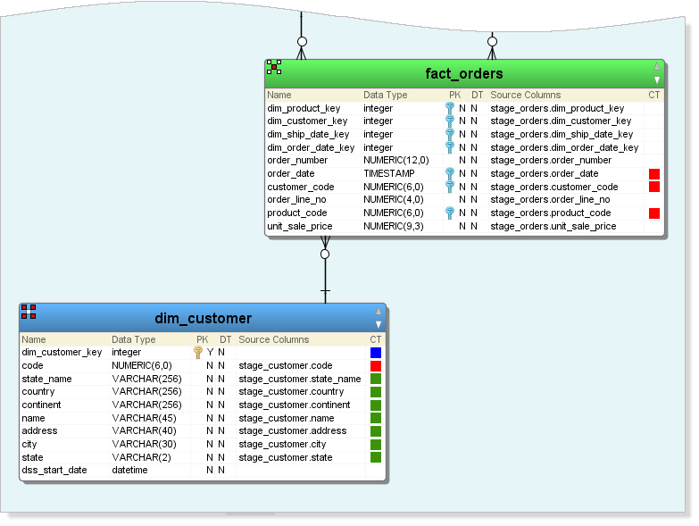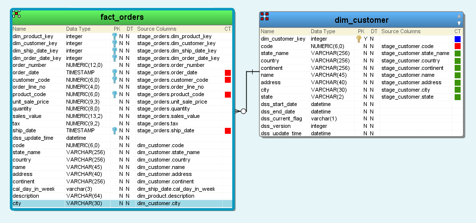 The selected columns are added to the fact_orders table.