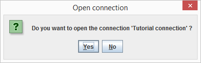 If the connection to a referenced database is currently closed you will be asked if you want to open it. Click Yes to proceed. - The query will be run and displayed, along with the result set, in a new query tab in the Workspace. Refer to Query Tabs for details.