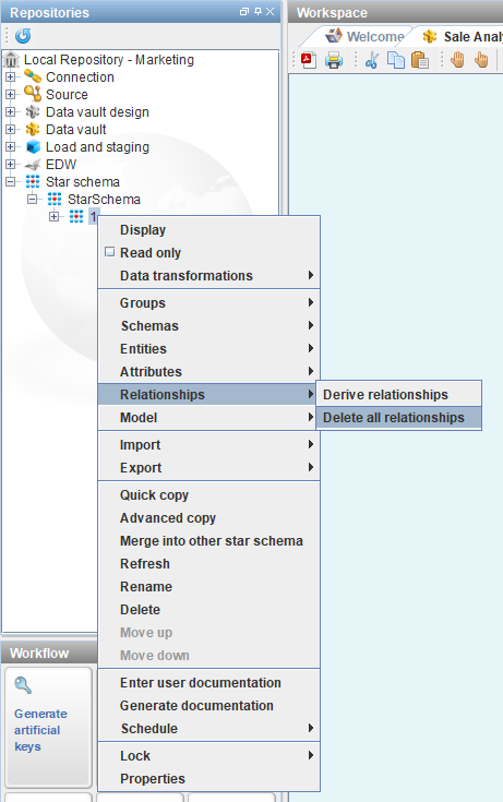 - Right-click on the version and select Relationships>Delete all relationships.