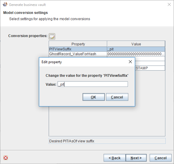 - In the Model conversion settings dialog, click to edit the conversion properties, and click Next.
