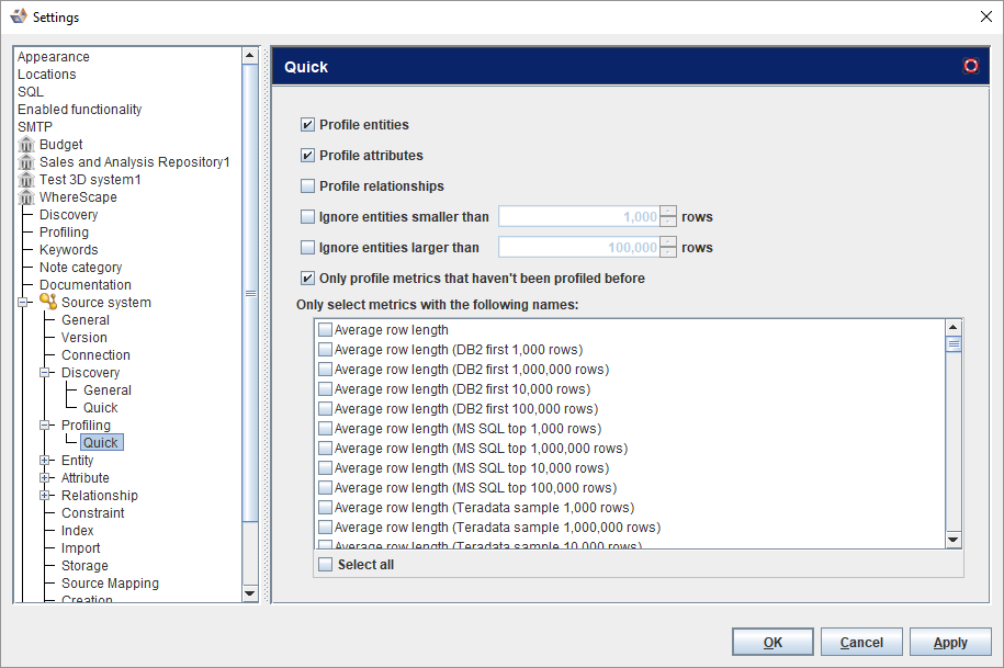 Only profile metrics that haven't been profiled before | Allows you to configure 3D to ignore metrics which have already been profiled. |