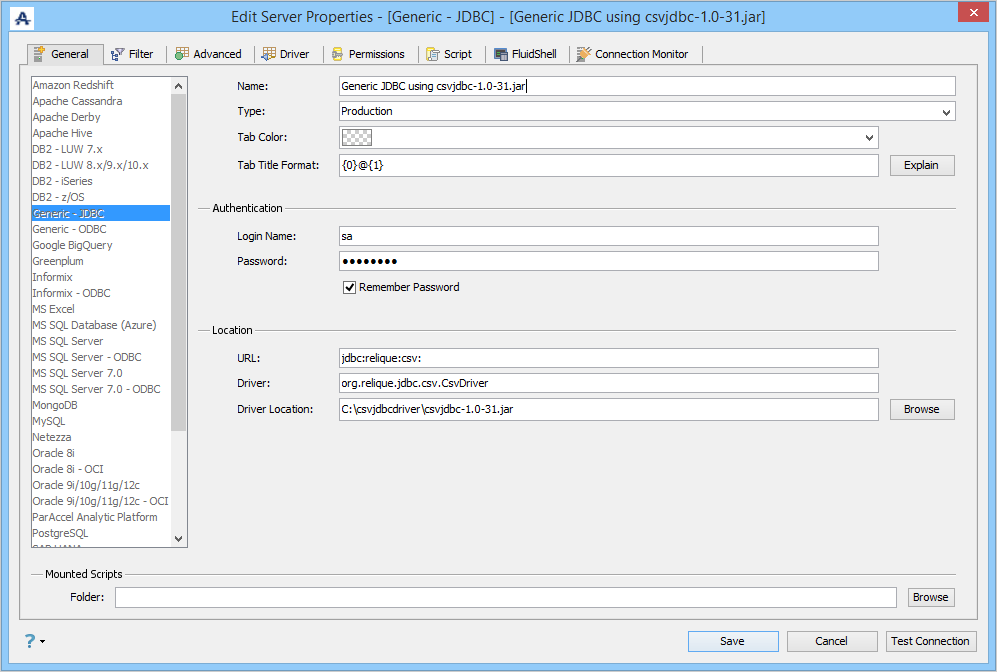 Edit the Drivers Properties to use Driver Parameters in Aqua Data Studio:
