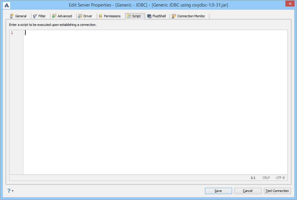 Edit Scripts in Server Properties in Aqua Data Studio: