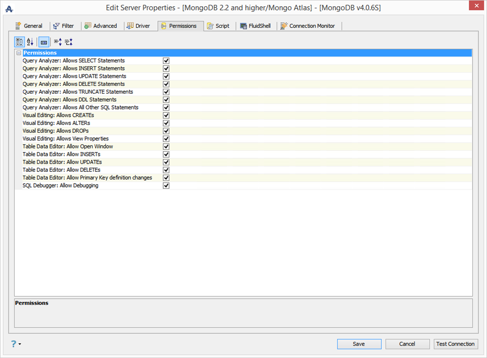 Edit the Permissions in Server Properties in Aqua Data Studio: