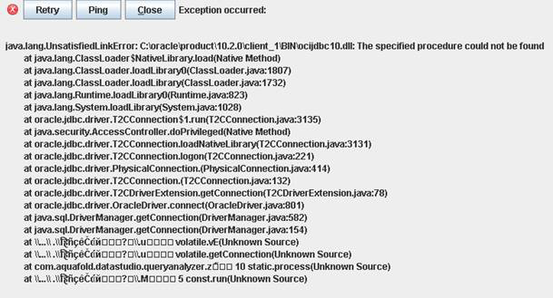 Be aware that if more than one Oracle client has been installed on the same computer as Aqua Data Studio, you must make sure that only one Oracle Client appears in the windows path. Having multiple versions of the OCI DLLs in the path will prevent Aqua Data Studio from successfully connecting and will generate an error message similar to the following when attempting to make a connection: