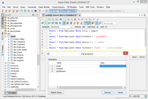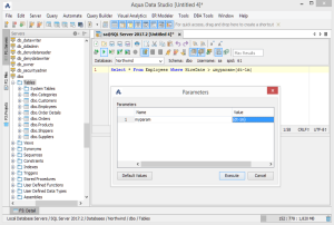 By enabling Parameterized Scripts, the user may have scripts with defined parameters so that Aqua Data Studio will prompt for the values of the parameters before executing the script.