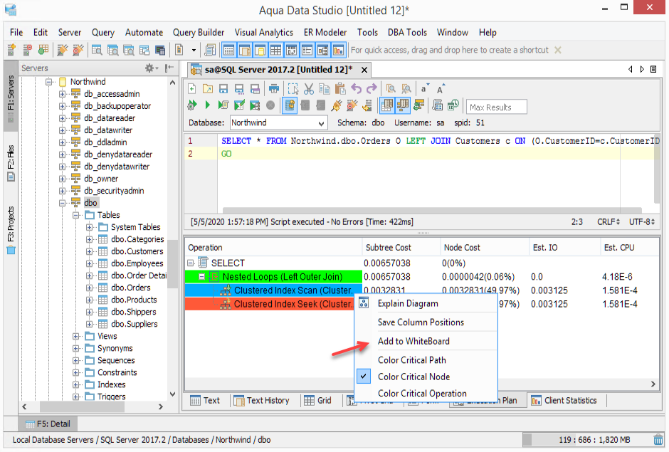 Read more about Execution Plans and the Visual Explain Whiteboard here.
