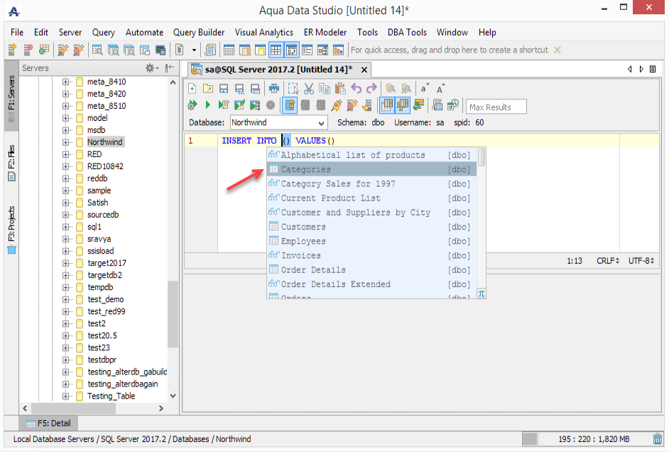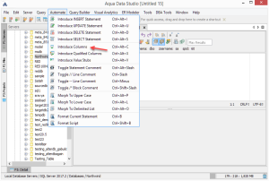 The SQL Automation features in Aqua Data Studio (the "Automate" pull-down menu) is to cut down on the number of keystrokes you make while writing SQL statements. Here is an example of how to automate the writing of basic INSERT statements with COLUMNS and value stubs.