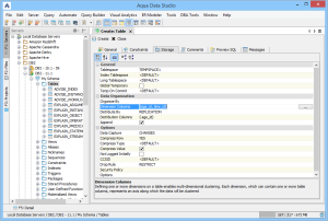 Below are the steps used to create a table in DB2 10.1. Because other databases may not have dimensions, steps 6 and 7 may not be needed.