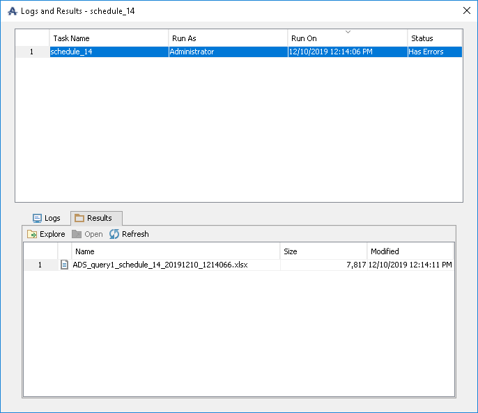 Once you select a task you can click on View Logs And Results of that specific task. This opens a new window that displays the logs and results from said task.