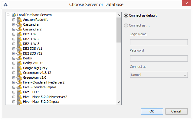 This first shows the database server selection window.