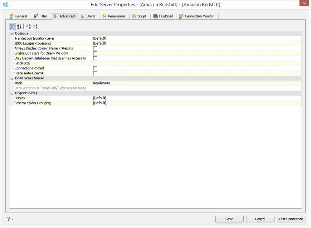 - Object Folder Schema Folder Grouping: Default, Yes or No. Schema Folder Grouping makes finding tables much easier because it groups them instead of showing each object individually.