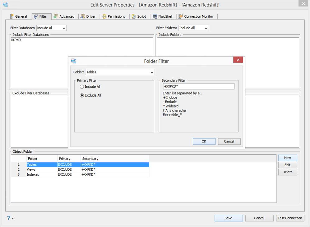 - Object Folder filter works on individual folders inside a particular database. The user can define filters for each of the Tables, Views, etc. folders.