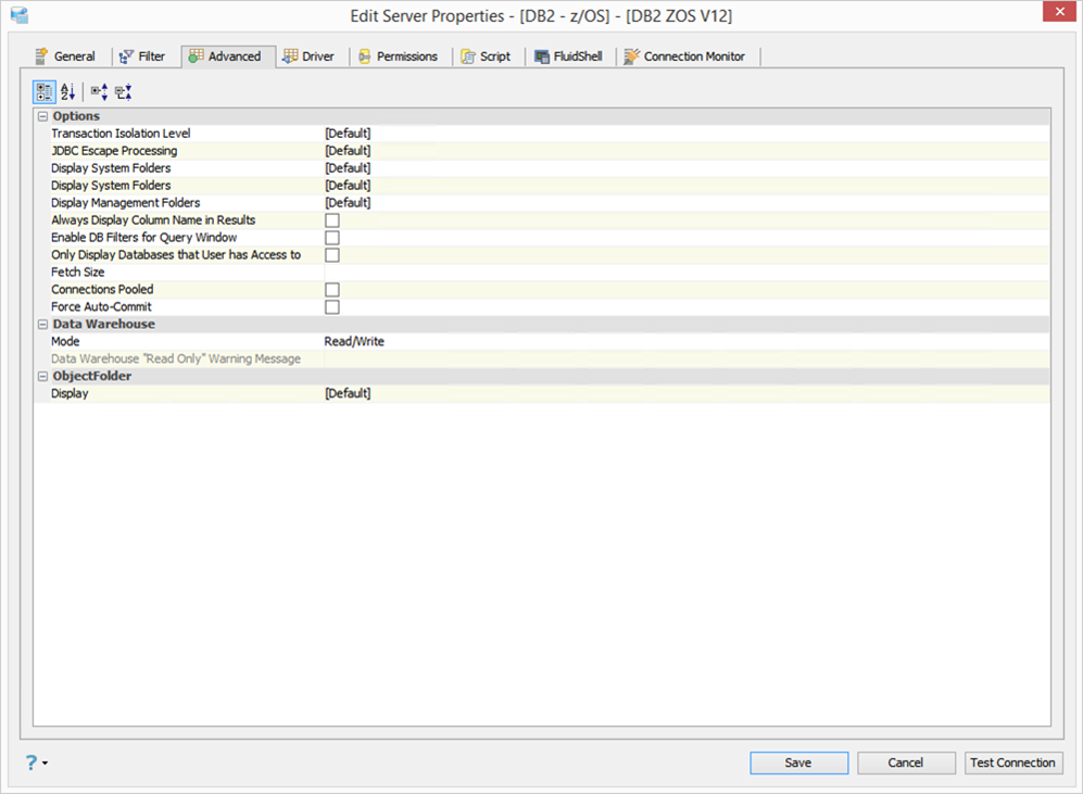 Edit the Server Properties to use Advanced Properties in Aqua Data Studio: