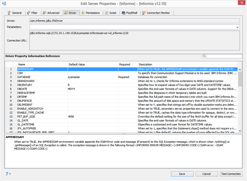 Edit the Drivers Properties to use Driver Parameters in Aqua Data Studio: