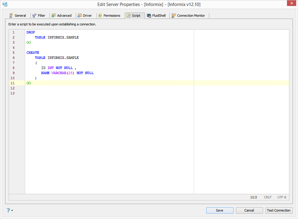 Edit Scripts in Server Properties in Aqua Data Studio: