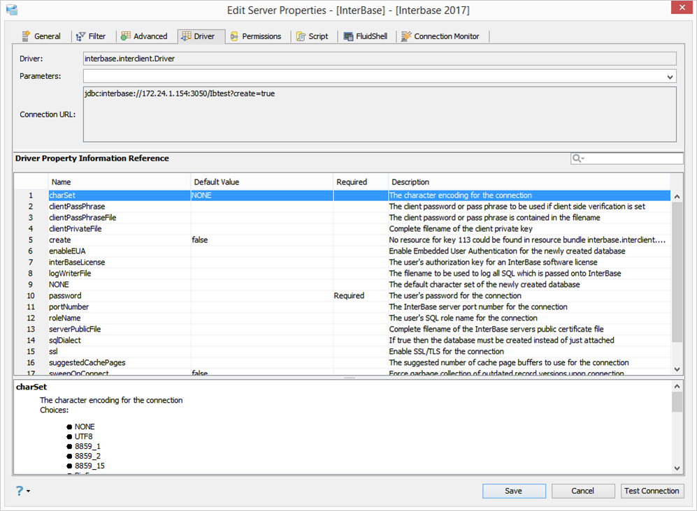 - Driver Parameters: This option is to allow a user to specify extra JDBC parameters that a user might want to use in establishing a connection.