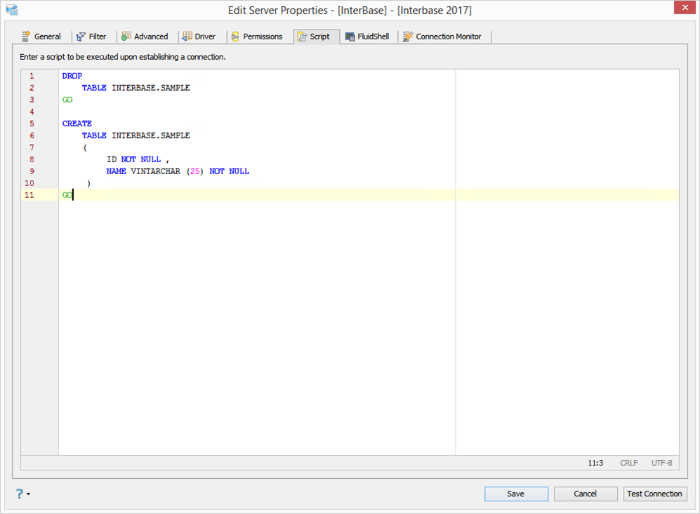 - Enter an SQL Script that is executed each time a new connection is established.