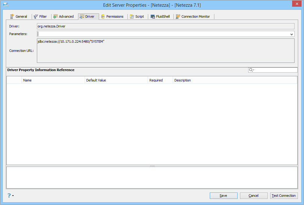• Driver Parameters: This option is to allow a user to specify extra JDBC parameters that a user might want to use in establishing a connection.