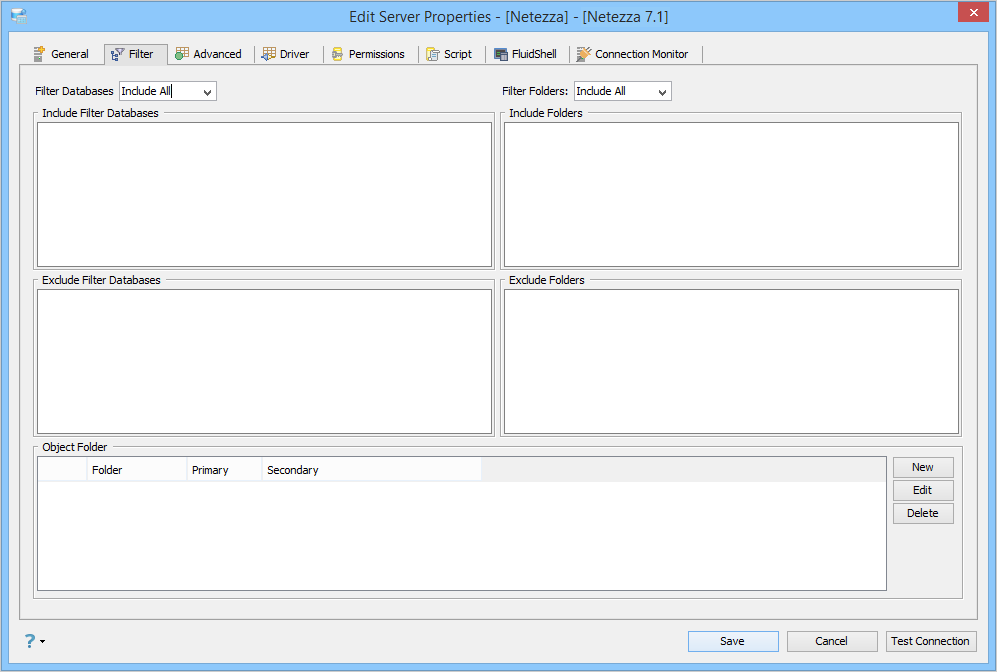 • Object Folder filter works on individual folders inside a particular database. The user can define filters for each of the Tables, Views, etc. folders.
