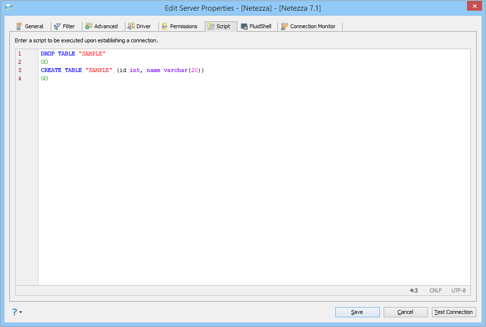 Edit Scripts in Server Properties in Aqua Data Studio: