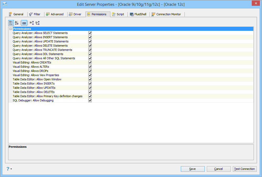 Edit the Permissions in Server Properties in Aqua Data Studio: