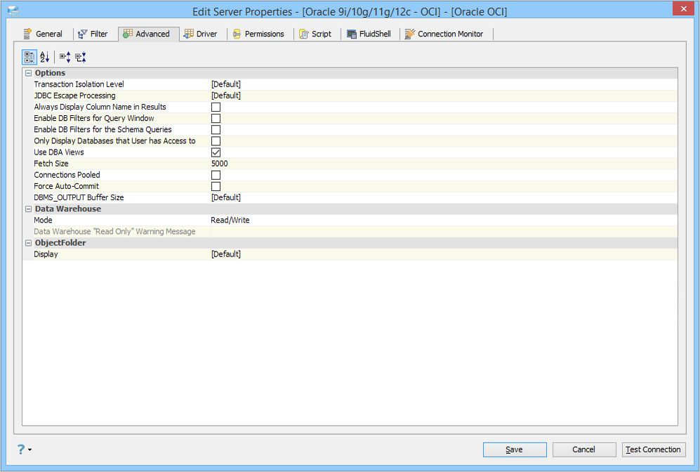 • Driver Parameters Quickfilter: This option is to allow a user to search JDBC parameters that a user might want to use in establishing a connection.