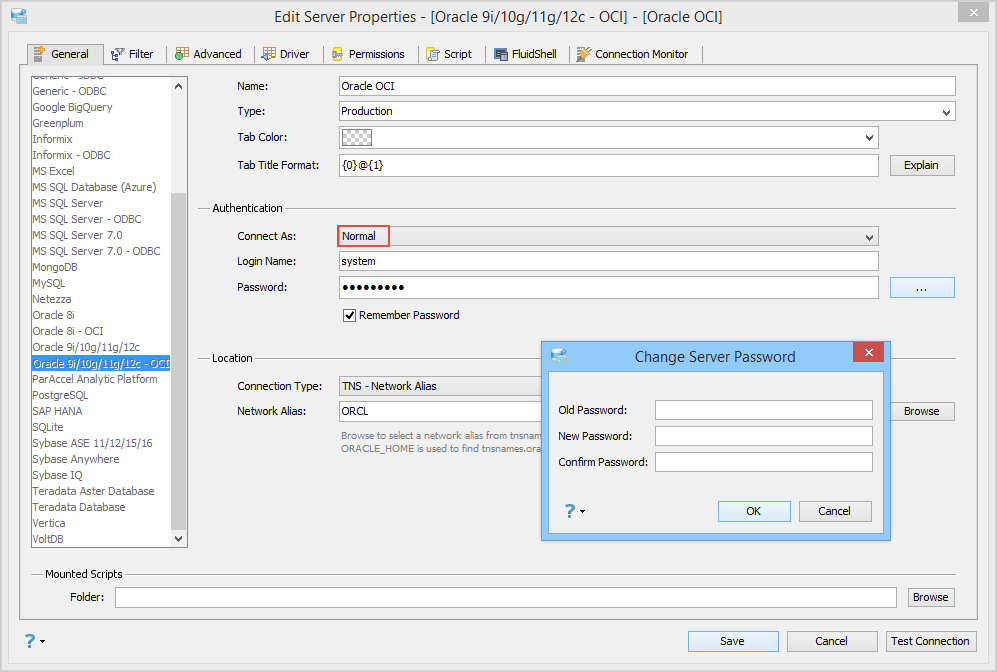 Browse to select a network alias from the tnsnames.ora file. TNS - Network Alias uses the Environment Variable TNS_ADMIN is used and if it is not found, the Environment Variable ORACLE_HOME is used to find the tnsnames.ora file.