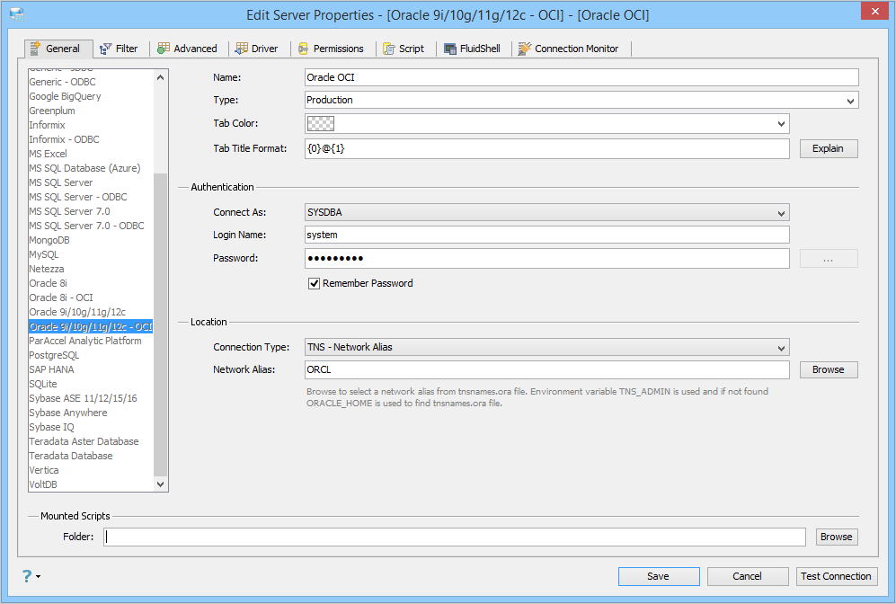 Connection Type - TNS Connect Descriptor