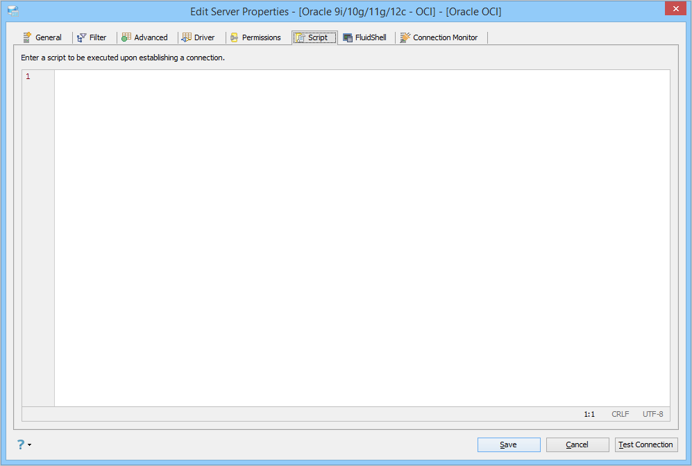 • Enter an SQL Script that is executed each time a new connection is established.