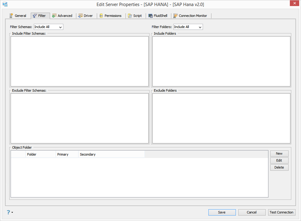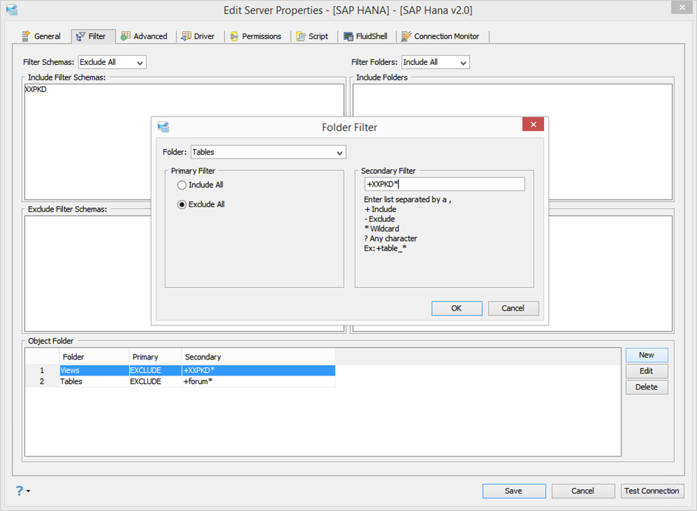 • Object Folder filter works on individual folders inside a particular database. The user can define filters for each of the Tables, Views, etc. folders.