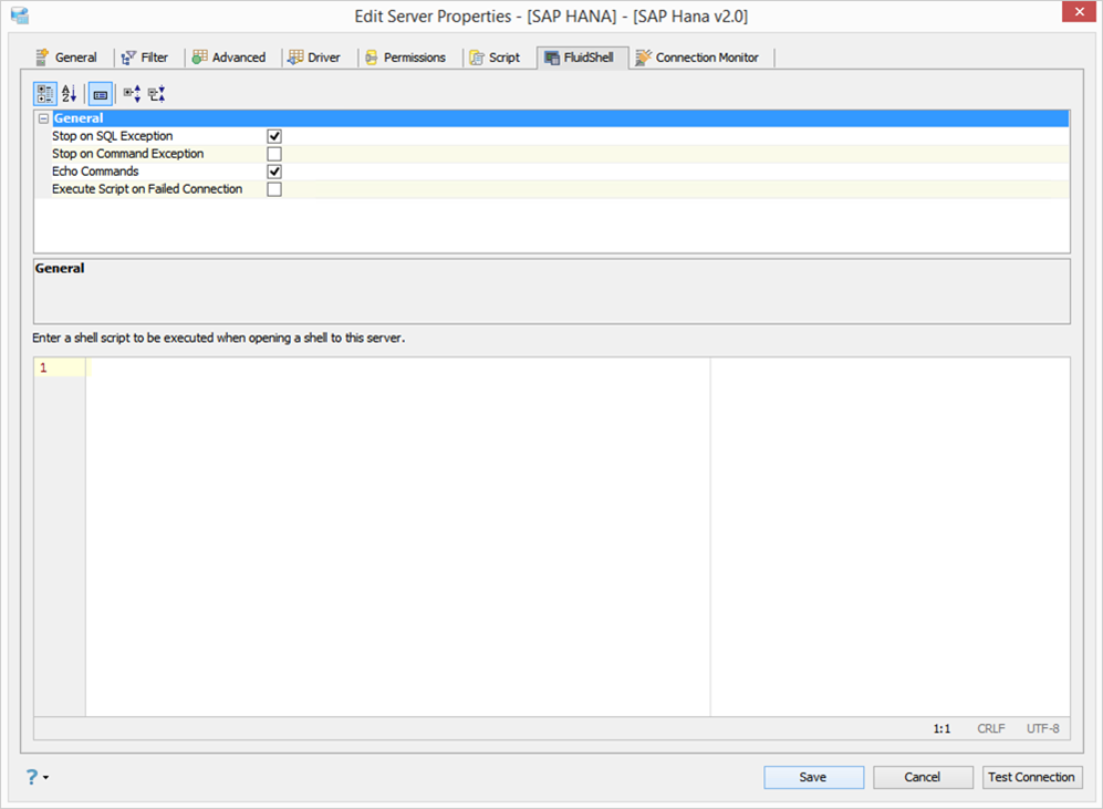 • Enter a FluidShell Script that is executed each time a new FluidShell connection is established.