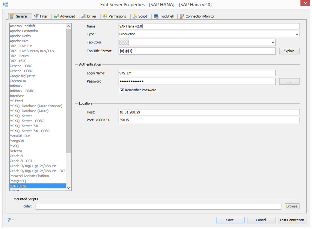 Before connecting to your server, make sure you have the appropriate driver for your SAP HANA version.