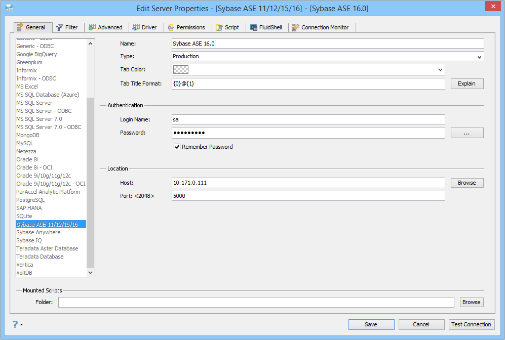 Edit Scripts in Server Properties in Aqua Data Studio: