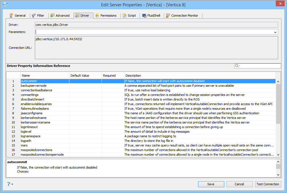 Using Driver Properties (Driver Tab)