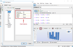 | 1. Execute in the Query Window | 2. Show Charts Icon | 3. Set Category and Series | 4. Set Chart Options |