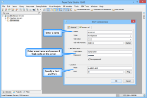 Using Aqua Data Studio to open an SSH Server