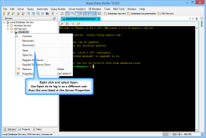 • Once the Server is successfully registered, it appears in the Server Group Node. You can now Open the Server.