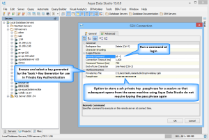 Aqua Data Studio includes an SSH Environment - an interactive Unix-like command-line interface. SSH is used for remote login and secure communications with remote servers over unsecured networks. The SSH interface is integrated in the IDE and utilizes all Aqua Data Studio GUI capabilities such as a tabbed window interface, customized tabs, search functions, keyboard mapping, docking framework, and Shortcut Toolbar shortcuts. Advanced Server Properties also allow the use of Private Key Authentication.