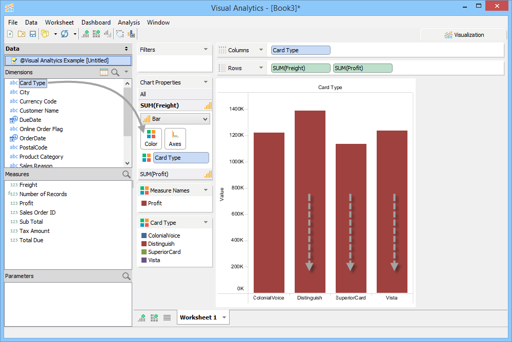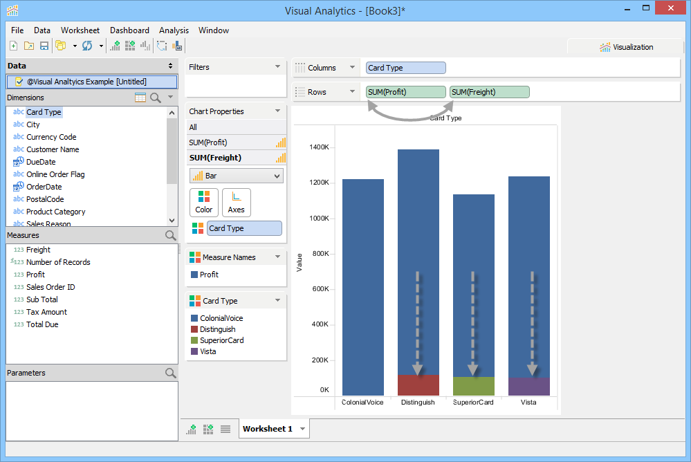 - Drag Tax Amount, Freight, and Profit from Measures to Rows.