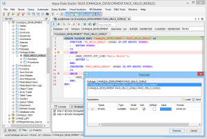 • Running the function or procedure up to next breakpoint. The execution can be stopped at any time using the stop button. Output messages for the execution can be viewed in the Console tab.