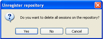 In the Profile Repositories Preferences dialog, select a profile repository from the list, and then click Unregister. Unregistering a data source prompts you to optionally delete all sessions on the repository.